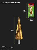 Сверло ступенчатое, URAGAN 4-32мм 15 ступеней, винтовая спираль