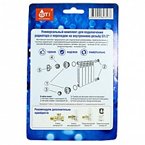 Монтажный комплект предназначен для подключения алюминиевых, биметаллических и чугунных радиаторов с присоединительным размером верхнего и нижнего коллекторов G1" (внутренняя резьба).