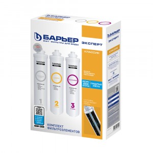 Комплект компактных сменных картриджей для фильтров. Применяется в трехступенчатых системах водоочистки «Эксперт Классик» для комплексной очистки водопроводной воды от различного типа примесей: продуктов хлорирования, токсичных и тяжелых металлов.